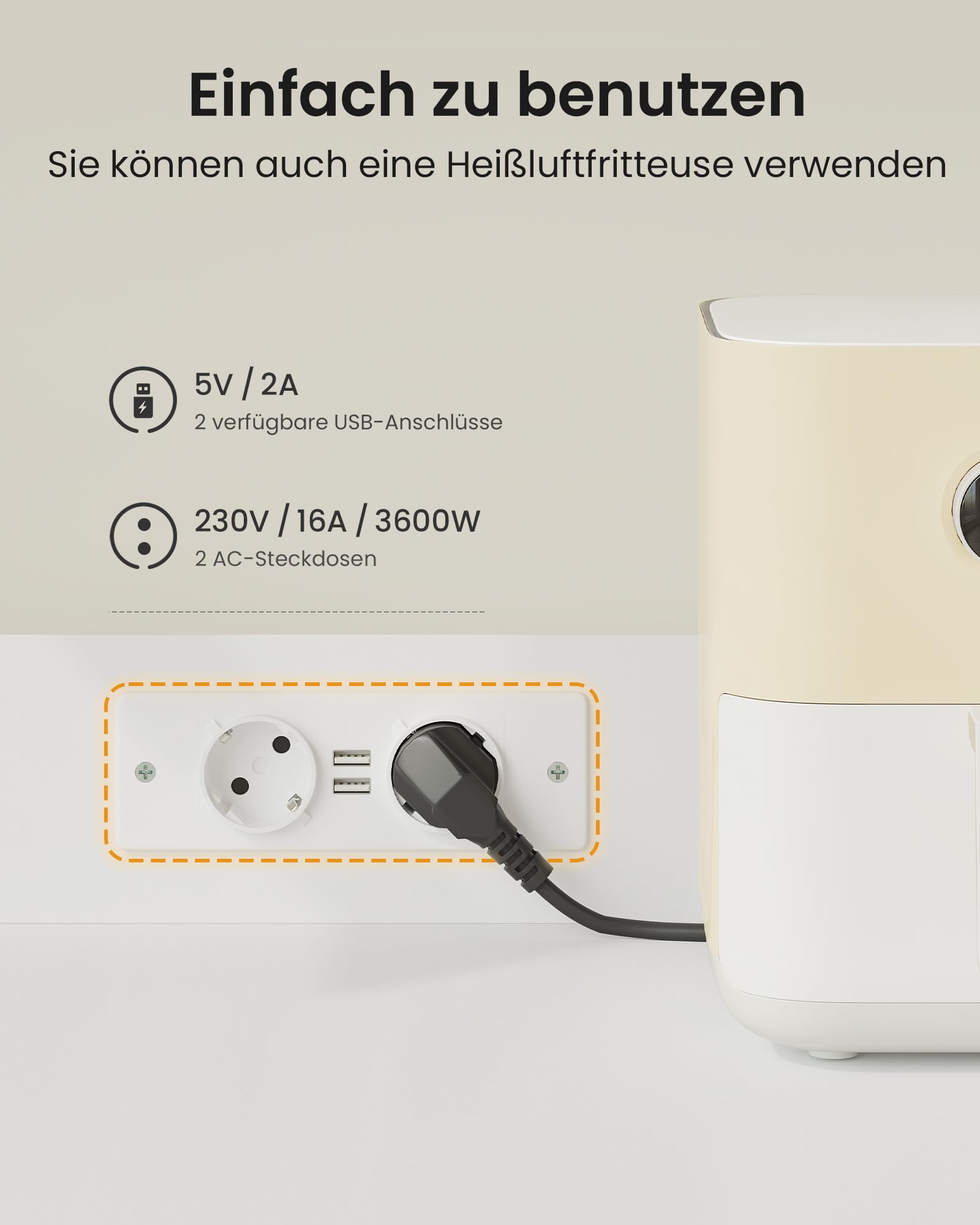 • Steckdosenleiste zum Aufladen: Das Sideboard ist mit 2 AC-Steckdosen und 2 USB-Anschlüssen versehen und kann somit den Strombedarf verschiedener Geräte decken. Die Steckdosenleiste von dem Küchenbuffet ist bis 3600 Watt vollbelastbar und kann Heißluftfritteuse und andere Geräte mit hoher Leistung versorgen. Es dient sowohl als Aufbewahrungsschrank als auch als eine kleine Ecke für Trinken, wo Sie Kaffee und Leckereien genießen können