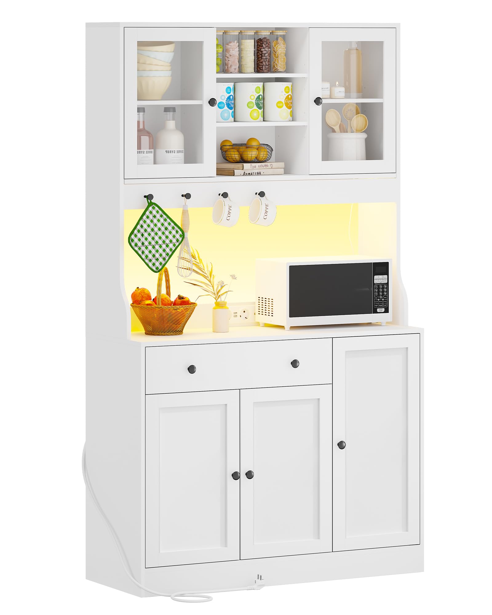 • Reichlicher Stauraum: Der Küchenschrank (103,5 B x 40 T x 180 H cm) verfügt über 2 Glasvitrinen im oberen Teil zur Aufbewahrung von Geschirr, Weingläsern und anderen Küchenutensilien. Die 3-stöckigen offenen Regale für Gewürze; 4 Haken für Küchenzangen und Lappen; eine große Arbeitsplatte und darunter liegende Schränke für Heißluftfritteuse, Kaffeemaschine, Toaster und andere Küchengeräte; eine große Schublade für Kleinigkeiten, dieser Buffetschrank erfüllt perfekt Ihren Aufbewahrungsbedarf